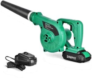 In the package, you will find a 20V lithium-ion battery, a user manual, and a charger along with the cordless leaf blower.